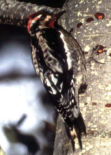 was real, not an artifact of the photograph or spilling of sap I concluded it was a Red-naped Sapsucker at the